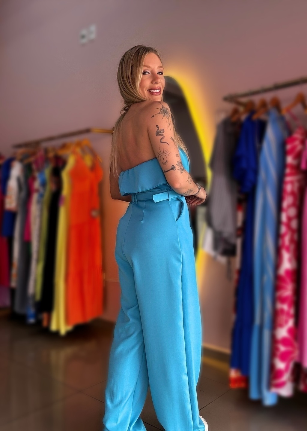 Características: modelo tomara que caia, possui zíper nas costas e acompanha cinto.